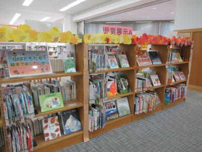 こどもエリア前(まえ)「秋(あき)のわくわく読書(どくしょ)時間(じかん)」「山(やま)はともだち!絵本(えほん)で楽(たの)しむ山登(やまのぼ)り」展示(てんじ)のお知(し)らせ