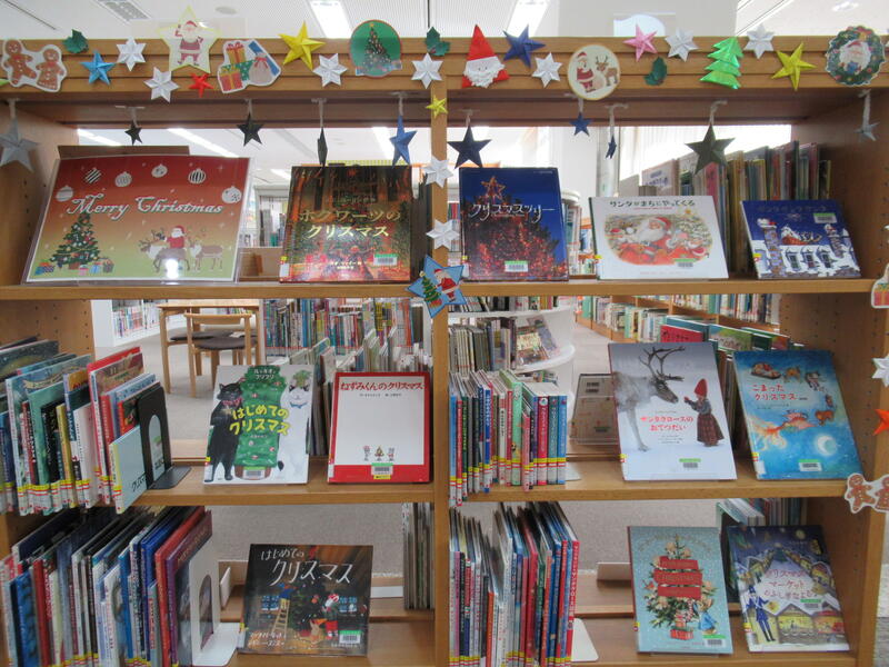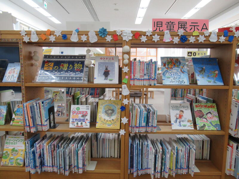 「冬(ふゆ)の贈(おく)り物(もの)」「メリークリスマス」展示(てんじ)がはじまりました。