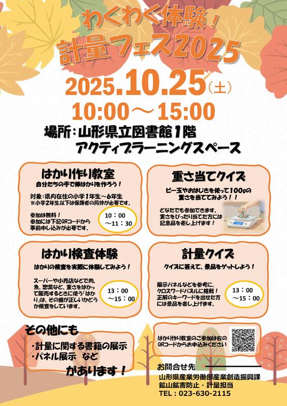 【オータムフェスタ2025 山形県計量協会×県産業創造振興課連携 本の森講座「わくわく体験!計量フェス2025」開催のお知らせ】