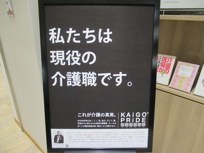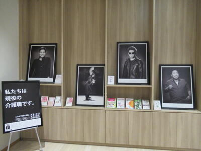 11月11日の介護の日にちなんで、介護職の魅力の発信する取組を実施している一般社団法人KAiGO PRiDEが作成したポートレート写真の展示を行っています。かっこいい介護士の方の写真ばかりで介護職のイメージが、がらりと変わると思います。