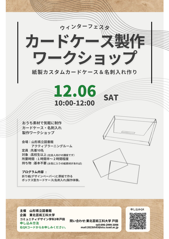 山形県立図書館では、東北芸術工科大学と連携し、「カードケース製作ワークショップ」を開催します!
