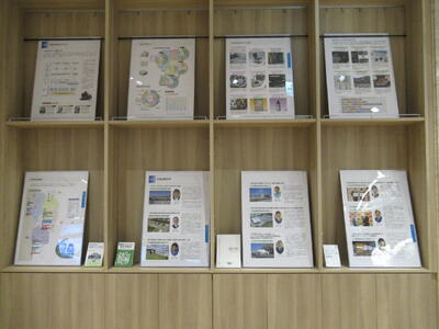 遊学館1階カフェレストランIL BLU遊学館前の県政情報発信コーナーでは、県産業創造振興課による「本県産業の強み・元気な企業・立地の取組みに関する展示」が始まりました。