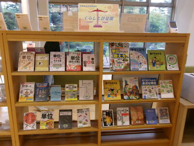 県立図書館でははかりや単位に関連する図書を多数展示しています。普段よく目にする単位にはどんな意味があるのか、ページをめくってみるのも楽しいかも知れません。