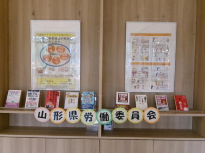 遊学館1階カフェレストランIL BLU遊学館前の県政情報発信コーナーでは、県労働委員会事務局による「個別労働紛争処理制度」周知月間に関する展示が始まりました。