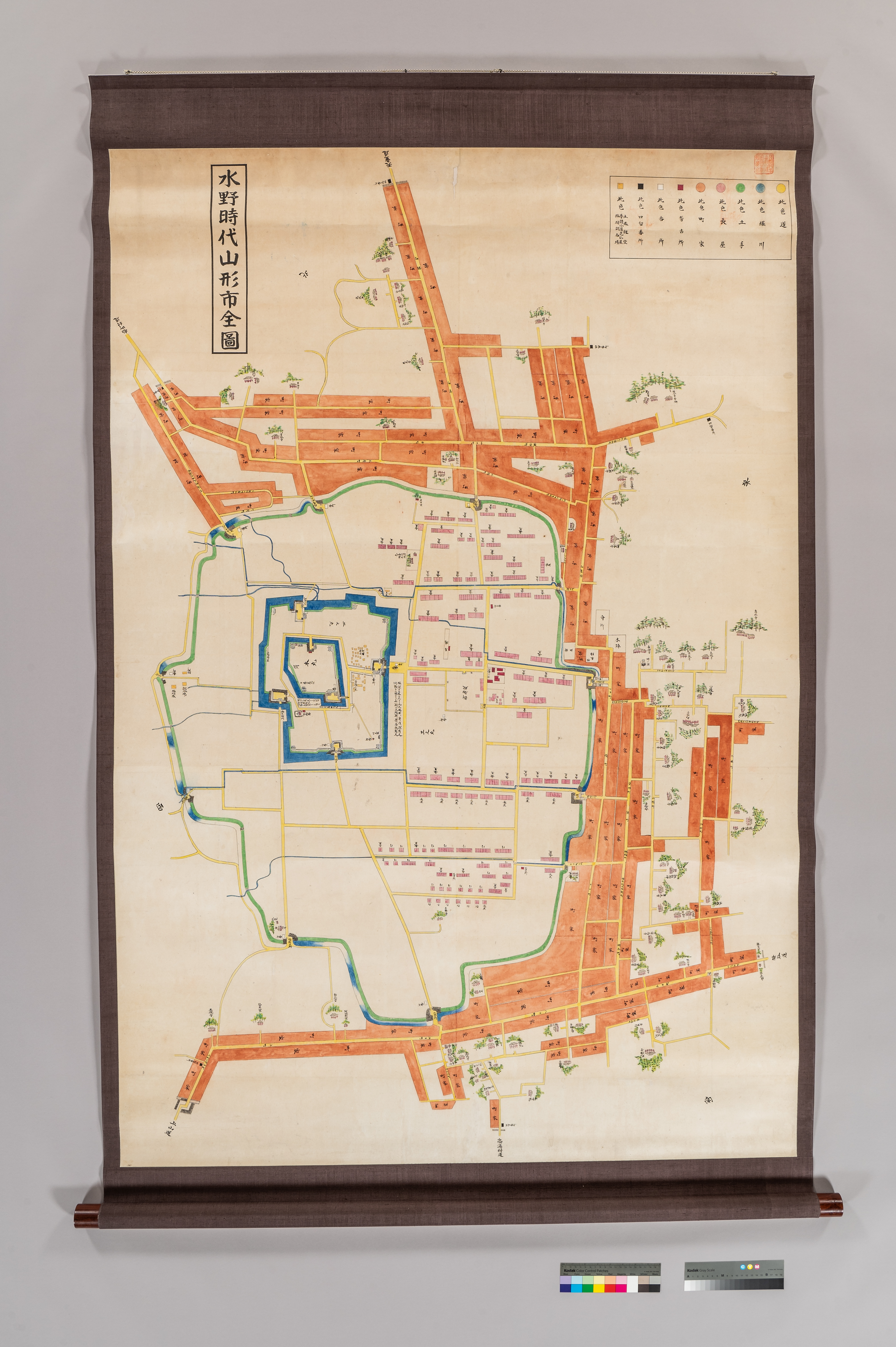 解題 幕末水野氏時代の山形城下絵図である。絵図中標題には「水野時代山形市全図」とある。