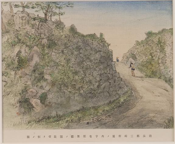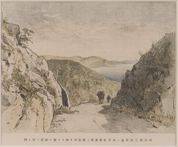 | タイトル | 飽海郡三崎新道ノ内有耶無耶ノ関趾切リ割ヨリ南ニ海面ヲ望ム図 |
